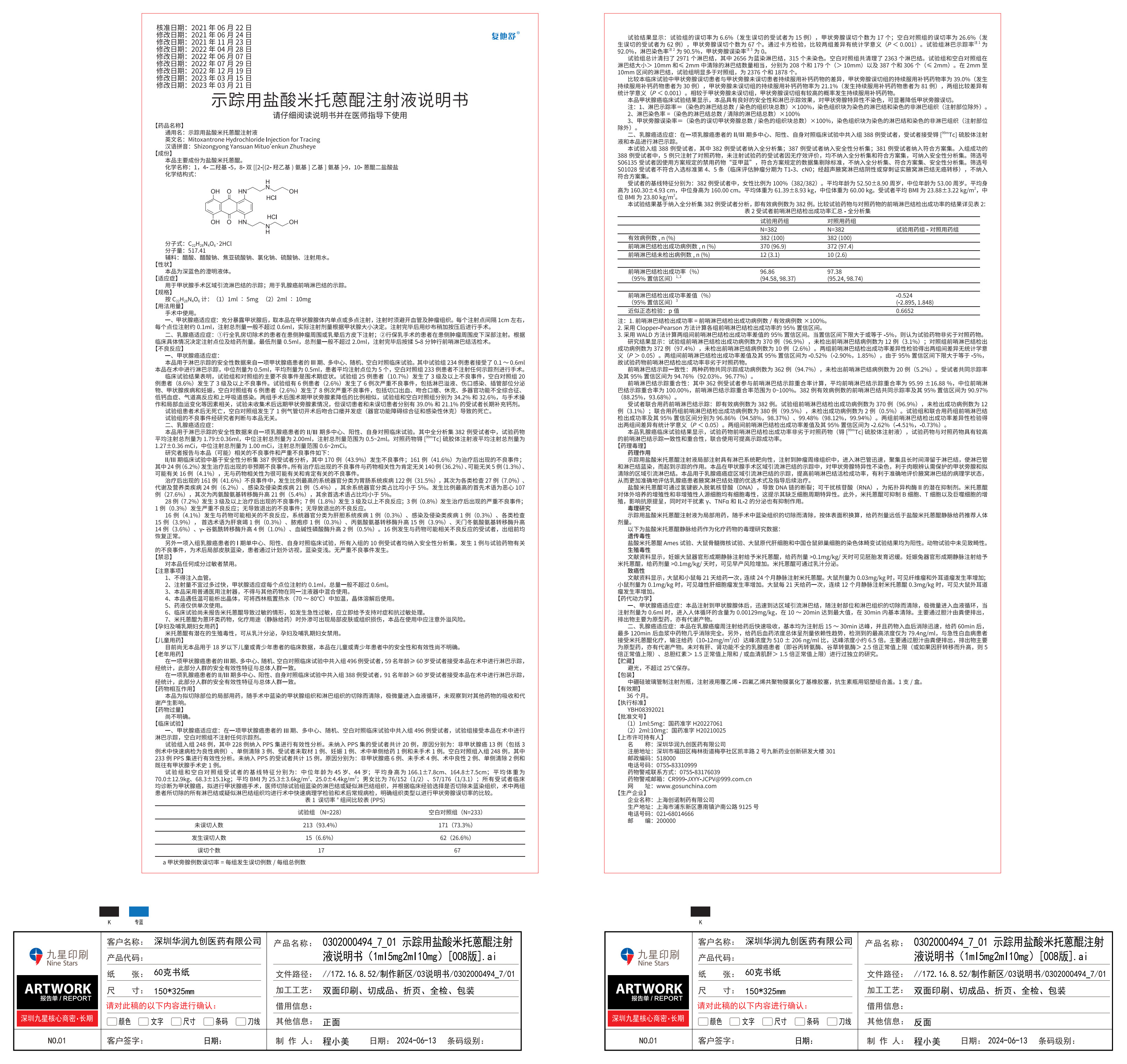 示蹤用鹽酸米托蒽醌注射液說明書