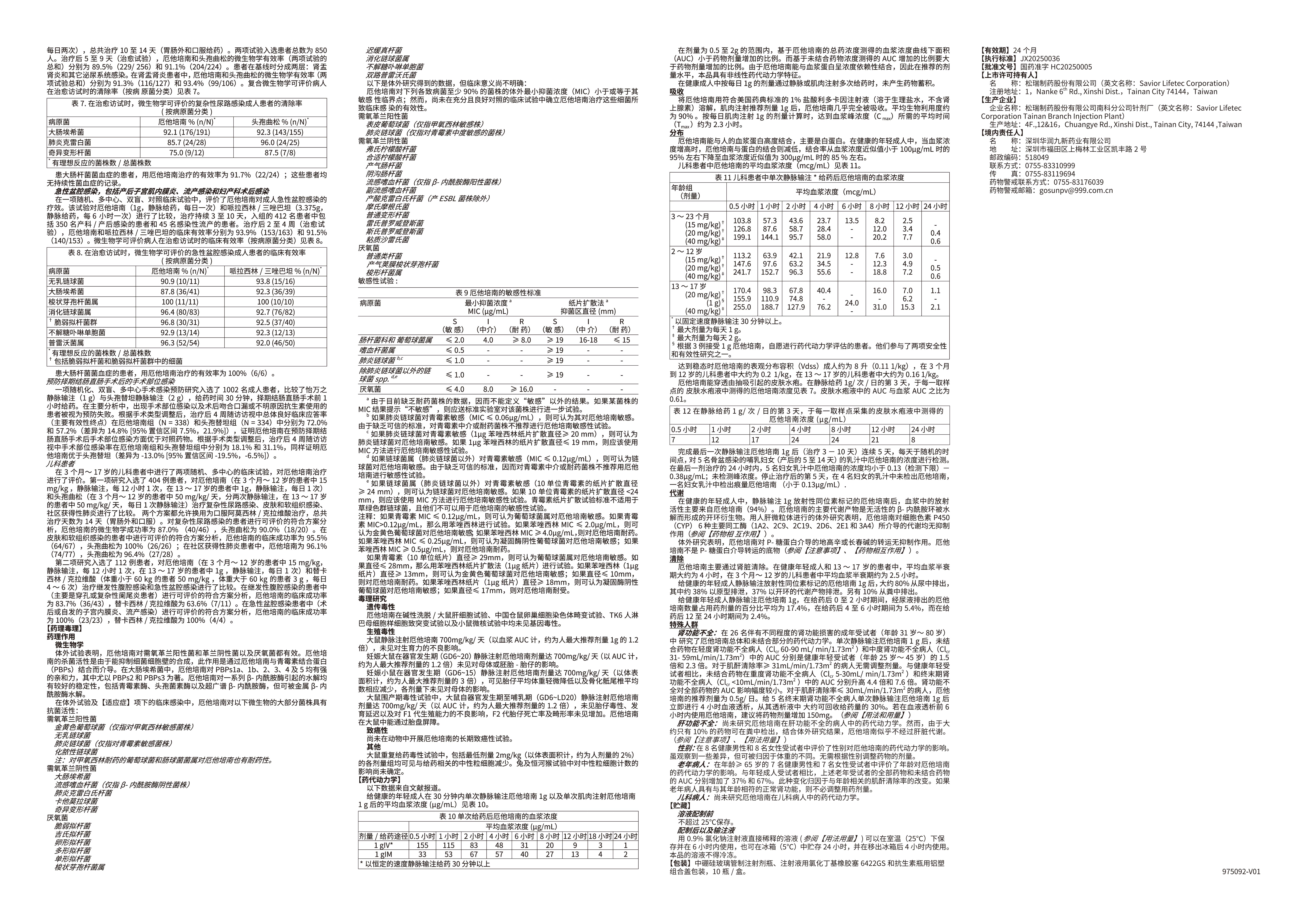 可用于治療患者由下述細(xì)菌的敏感菌株引起的下列中度至重度感染。 繼發(fā)性腹腔感染:由大腸埃希菌、梭狀芽孢桿菌、遲緩真桿菌、消化鏈球菌屬、脆弱擬桿菌、吉氏擬桿菌、卵形擬桿菌、多形擬桿菌或單形擬桿菌引起者。 復(fù)雜性皮膚及附屬器感染:由金黃色葡萄球菌(僅指對(duì)甲氧西林敏感菌株)化膿性鏈球菌、大腸埃希菌、消化鏈球菌屬引起者。 社區(qū)獲得性肺炎:由肺炎鏈球菌(僅指對(duì)青霉素敏感的菌株,包括合并菌血癥的病例)、流感嗜血桿菌(僅指β-內(nèi)酰胺酶陰性菌株)或卡他莫拉球菌引起者。 復(fù)雜性尿道感染,包括腎盂腎炎:由大腸埃希菌或肺炎克雷白氏桿菌引起者。 急性盆腔感染,包括產(chǎn)后子宮內(nèi)膜炎、流產(chǎn)感染和婦產(chǎn)科術(shù)后感染:由無(wú)乳鏈球菌、大腸埃希菌、脆弱擬桿菌、不解糖卟啉單胞菌、消化鏈球菌屬或雙路普雷沃氏菌屬引起者。 菌血癥。 且本品可用于成人患者擇期結(jié)直腸術(shù)后手術(shù)部位感染的預(yù)防。