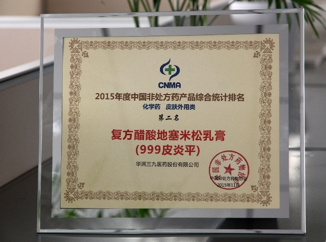 根據(jù)此次發(fā)布的獲獎(jiǎng)名單,在生產(chǎn)企業(yè)綜合統(tǒng)計(jì)排名方面,華潤三九榮獲企業(yè)綜合榜第一名;在非處方藥產(chǎn)品統(tǒng)計(jì)排名方面,999感冒靈獲中成藥感冒咳嗽類第一名,999皮炎平獲化藥皮膚外用類第二名,正天丸獲中成藥頭痛失眠類第二名,三九胃泰獲中成藥消化類第四名,骨通貼膏獲中成藥外用類第四名,999小兒感冒顆粒獲中成藥兒科類第三名,999小兒氨酚黃那敏顆粒獲化藥兒科類第四名?! 。ㄔ#?br>