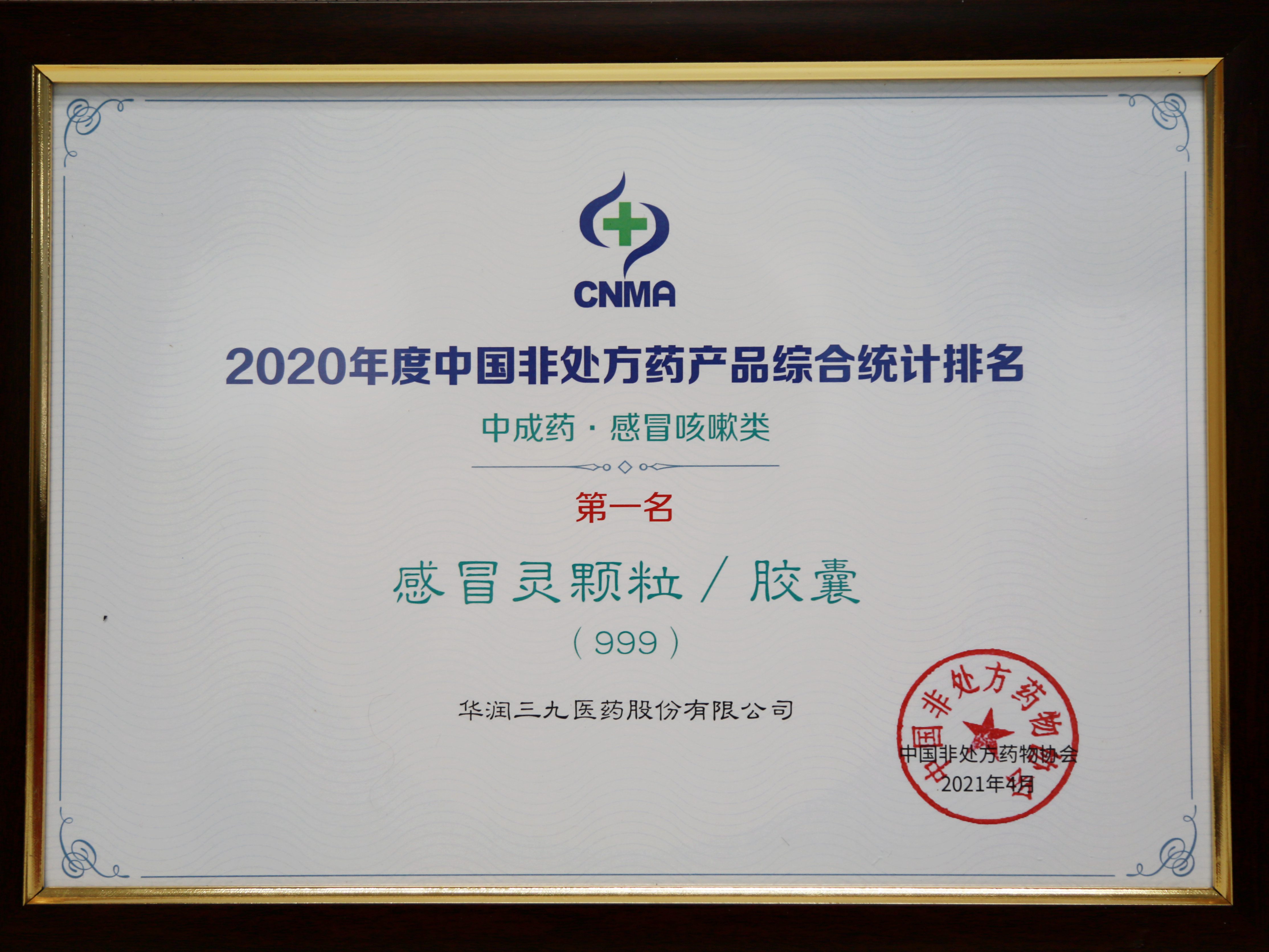 4月1日,由中國(guó)非處方藥協(xié)會(huì)主辦的“第十七屆中國(guó)自我藥療年會(huì)”,發(fā)布了2020年度中國(guó)非處方藥生產(chǎn)企業(yè)綜合統(tǒng)計(jì)排名,華潤(rùn)三九再次榮登榜首。此外,999感冒靈顆粒/膠囊連續(xù)九年蟬聯(lián)感冒咳嗽類(lèi)(中成藥)第一名,999復(fù)方醋酸地塞米松乳膏、多烯磷脂酰膽堿膠囊(易善復(fù))、999復(fù)方感冒靈顆粒在各自的品類(lèi)排名中斬獲前三甲。